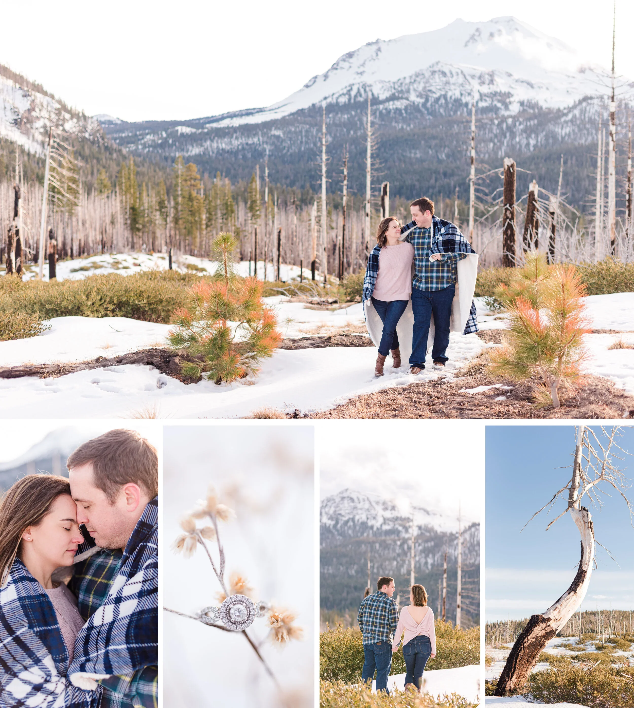 Snowy Mt. Shasta Engagement Session at Bunny Flats Trailhead